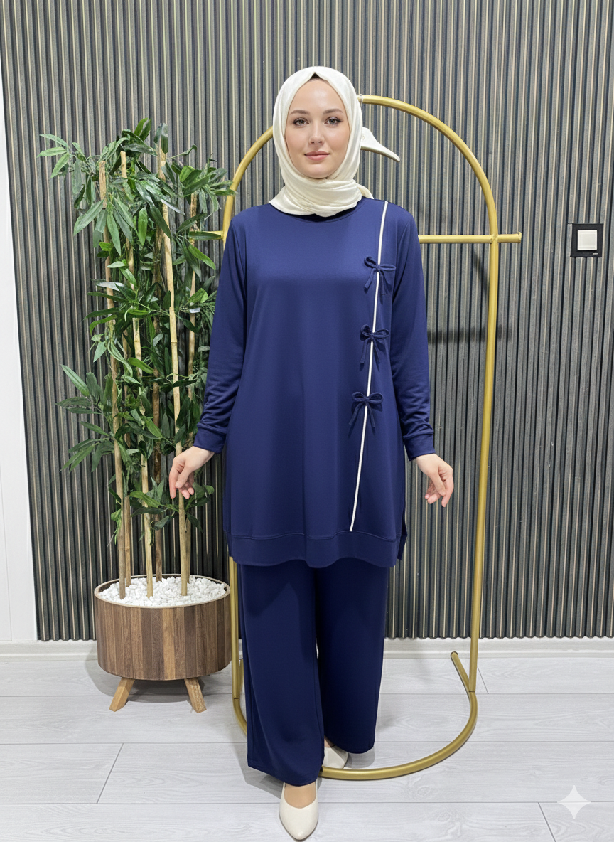 KURDELE DETAY TAKIM LACİVERT