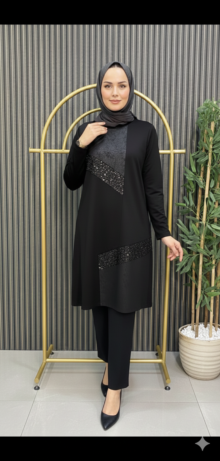 Özel günlerde ve şık davetlerde fark yaratmak isteyenler için Taş detaylarıyla zarif, kesimiyle çok şık bir görünüm sunar