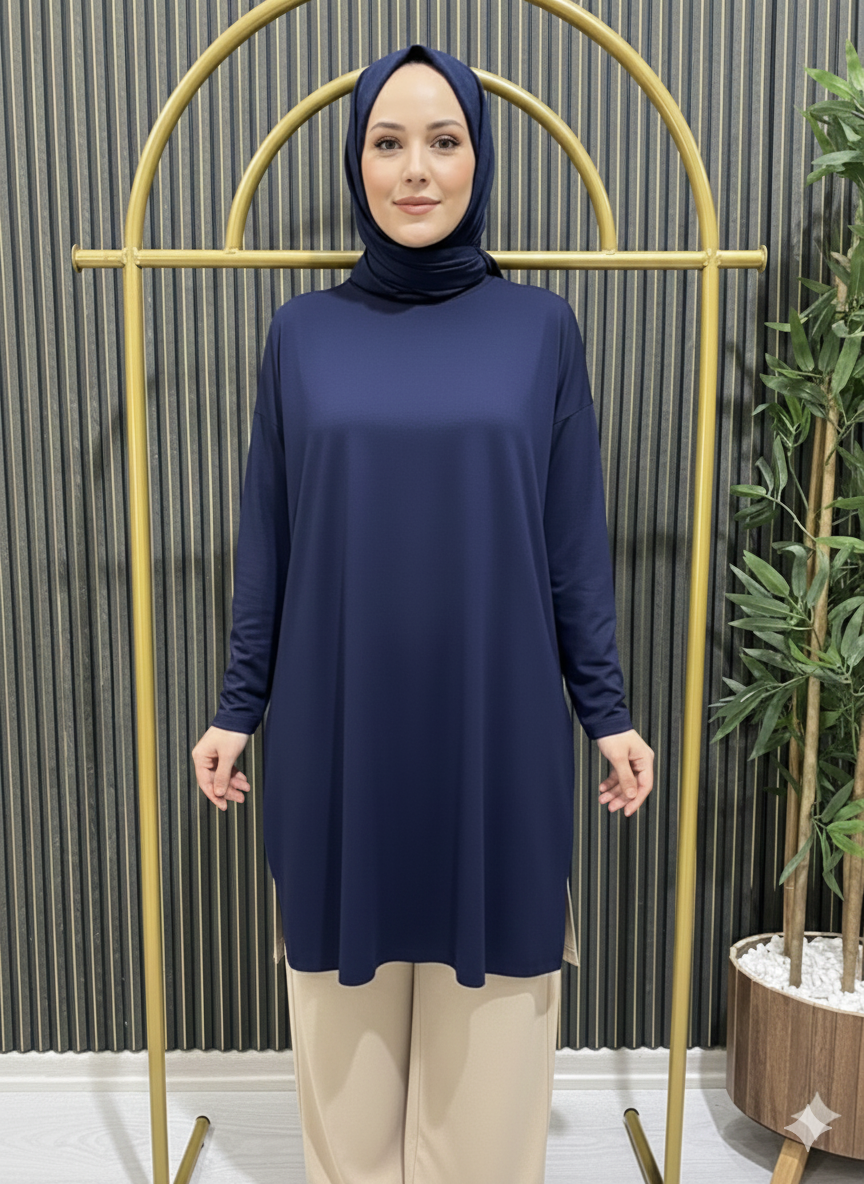 Günlük kullanım için ideal, büyük beden rahatlığını ön planda tutan uzun tunik Likralı penye kumaşı sayesinde esnek, yumuşak ve gün boyu konfor sağlar.