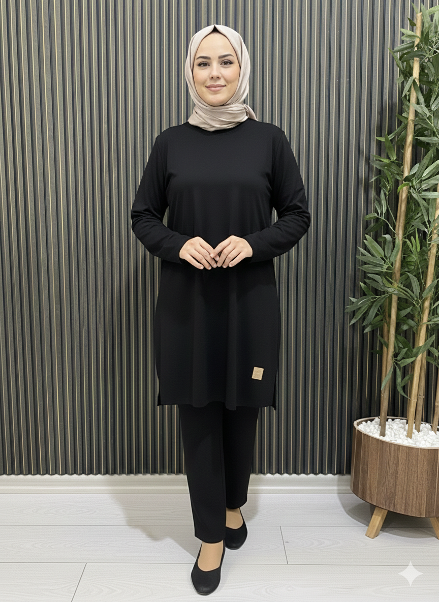 Günlük kullanım için ideal, büyük beden rahatlığını ön planda tutan uzun tunik Likralı penye kumaşı sayesinde esnek, yumuşak ve gün boyu konfor sağlar.