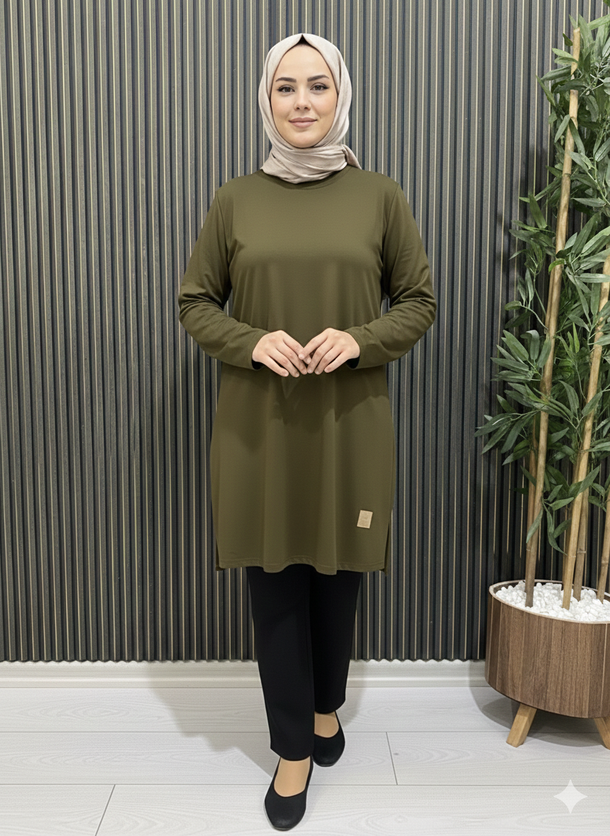 Günlük kullanım için ideal, büyük beden rahatlığını ön planda tutan uzun tunik Likralı penye kumaşı sayesinde esnek, yumuşak ve gün boyu konfor sağlar.